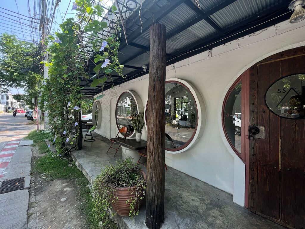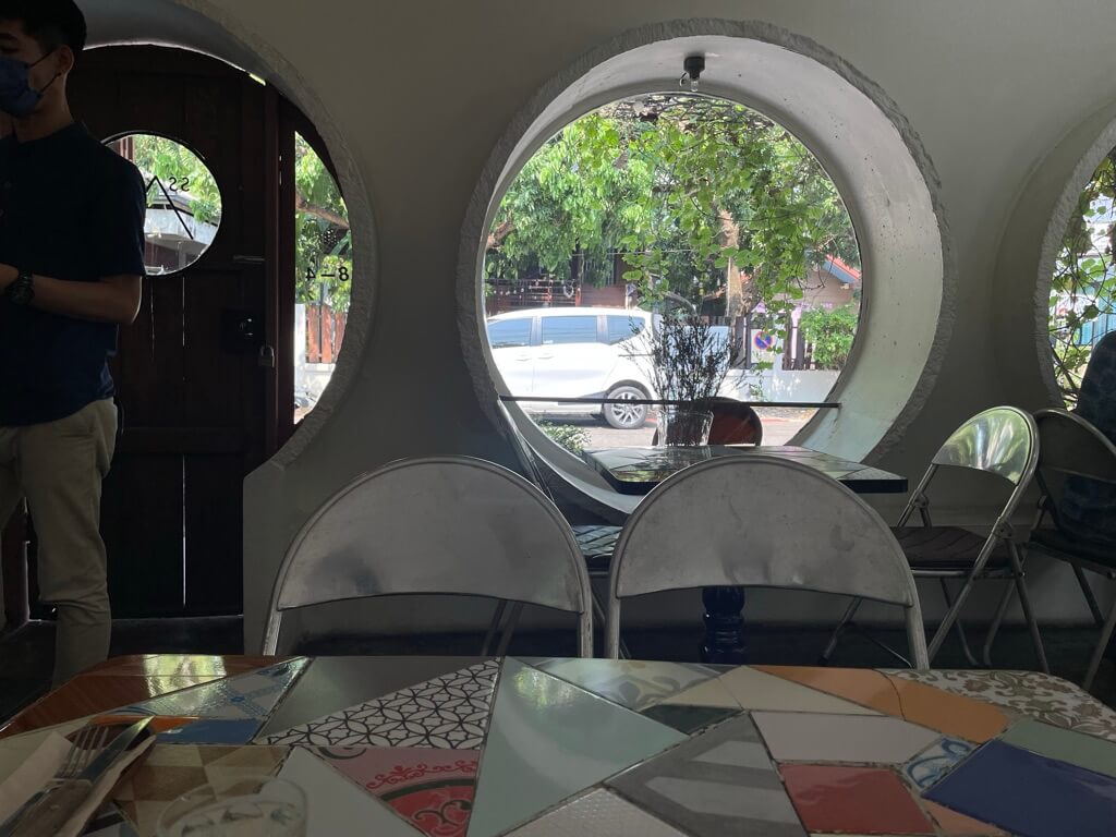 ニマンヘミンの少し北のエリアにある、外観から丸い窓が特徴のお洒落カフェ。