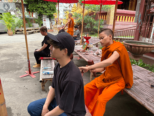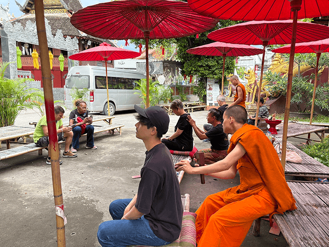 このようにお寺の敷地内でお坊さんが施術をしてくれるのは、よりタイ伝統を感じることができます!✨